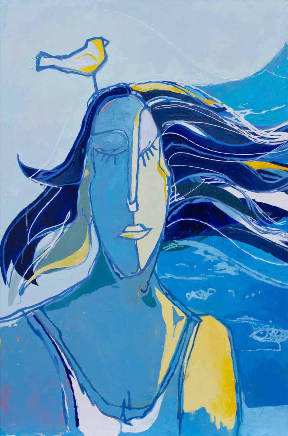 88.5 x 74 cmThalassa, the sea goddess in Greek mythology, the personification of the sea in its primordial state. She represents the life force and fecundity of the ocean, being considered the mother of all sea creatures. Thalassa embodies the power and immensity of the Mediterranean Sea, symbolising both its capacity to give life and its untamed and mysterious nature.